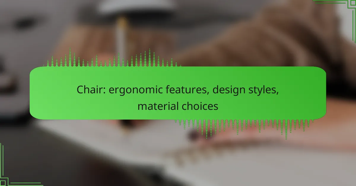 Choosing the right ergonomic chair involves understanding its essential features that enhance comfort and support, particularly for prolonged sitting. Key elements such as lumbar support, adjustable height, and breathable materials play a crucial role in reducing strain. Additionally, various design styles, from modern minimalist to classic leather, cater to diverse aesthetic preferences while ensuring functionality. The materials used in these chairs not only impact their durability but also influence the overall user experience.